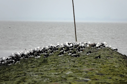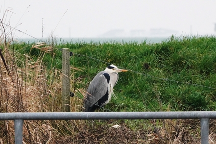 Der Nebel ist tatsächlich verschwunden, trüb ist es leider nach wie vor. Wir wandern die Küste entlang zum Kutterhafen Spieka. In der Ferne riesige Schwärme von Gänsen, ab und an mal ein Reiher. Aber die Fotobedingungen sind nach wie vor schlecht.