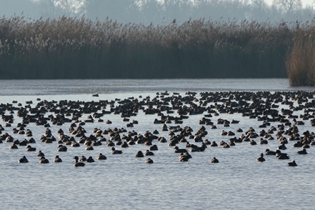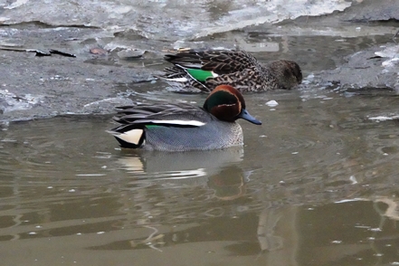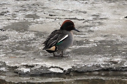 Nicht weit entfernt befindet sich ein weiterer Mini-Hafen. Auch hier ist noch alles vereist. Zahlreiche Krickenten sind zu beobachten, leider erneut bei widrigen Lichtverhältnissen.