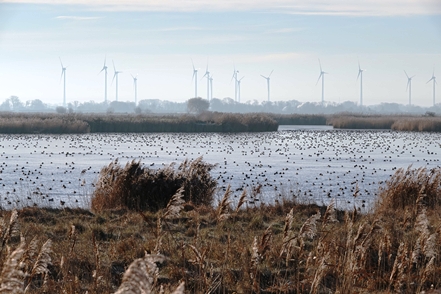 Eigentlich wollen wir zum Wildvogelreservat Nordkehdingen, aber das Gebiet ist jetzt im Winter nicht zugänglich. So bleibt uns nur der Blick aus der Ferne auf riesige Vogelschwärme, bei denen wir deshalb auch nicht mit Bestimmtheit sagen können, um welche Arten es sich handelt. Auch den alten Leuchtturm Balje können wir so nicht erreichen, aber zumindest vom Deich aus fotografieren. Wir halten uns an das Verbot, ärgern uns aber wieder einmal, dass wir in der Ferne im Gebiet ignorante Spaziergänger mit freilaufenden Hunden sichten, wie leider nahezu überall hier in den Schutzgebieten, wo zumindest Leinenpflicht besteht.
