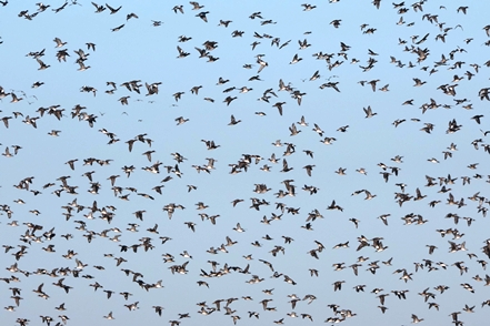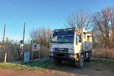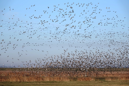 Heute fahren wir mit dem MAN auf schmalen, aber auch für uns zugelassenen Wegen durch die Elbmarschen. Wieder sehen wir unglaubliche Mengen an Gänsen und Enten. Die letzteren ziehen sich allerdings sofort weit zurück, so dass nur bleibt, einen Überblick über die Menge aus der Ferne zu fotografieren.