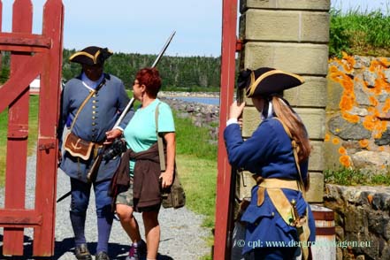 Am nächsten Morgen geht es zuerst zum Einkaufen, sind doch die Möglichkeiten hier besser als im Umfeld der Fähre auf Neufundland. Danach fahren wir zur Fortress of Louisbourg. Diese Befestigung wurde Anfang des 18. Jahrhunderts von den Franzosen erbaut, später von den Briten erobert und zerstört. Um 1960 herum begann man mit der Rekonstruktion. Etwa ein Viertel der Stadt und der Fortanlage sind wieder aufgebaut worden und dienen heute als sogenanntes "living museum".