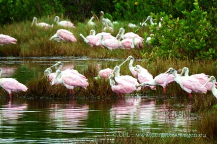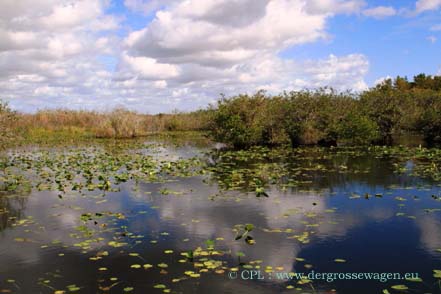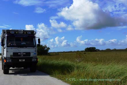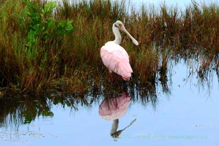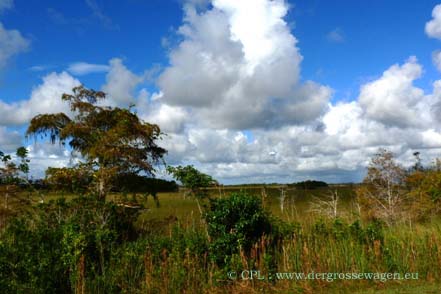 Wir wollen in den Everglades Nationalpark, hier einige Tage verbringen, das Boot aufbauen und ausgiebige Bootstouren unternehmen. Aber das kommt dann leider ganz anders. Unser Aufenthalt ist nur ein sehr kurzer. Lediglich der Flamingo Campground ganz im Süden ist geöffnet, dort ist auch anders als sonst hier überall nicht viel los. Aber es ist nicht auszuhalten. Dabei meinen wir gar nicht die unerträgliche Hitze, die uns nun schon die ganze Zeit begleitet. Da es auch nachts kaum abkühlt, ist es nicht sehr angenehm. Nein - Millionen von Mücken. Wir sind wirklich nicht empfindlich in dieser Beziehung, auch einiges gewöhnt, aber das ist unerträglich. So wie man das Fahrzeug verlässt, stürzen sich unzählige Stechviecher auf einen. So aggressive Viecher haben wir selbst im schlimmsten Fall im Dreiländereck in Skandinavien und in Alaska nicht erlebt. Mücken haben wir hier bisher eigentlich überall gehabt, aber anderswo ist es bisher so, dass man tagsüber relativ Ruhe vor den Biestern hat, allerdings muss man sich dann spätestens bei Sonnenuntergang ins aufgeheizte Fahrzeug verziehen. Hier hingegen gibt es auch tagsüber keine Ruhe. Die Viecher finden jede auch noch so kleine Stelle, die nicht mit dem überaus giftigen Einsprühzeug in Berührung gekommen ist. Kleidung ist keinerlei Hindernis. Das macht absolut keinen Spaß. Also fahren wir am nächsten Morgen wieder ab.
