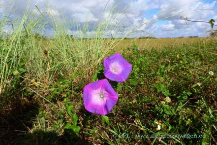 Erstaunlicherweise wird die Situation besser je weiter wir uns vom Meer entfernen. So können wir dick eingenebelt zumindest noch ab und an aussteigen, Landschaft und schöne Blumen am Wegesrand fotografieren.