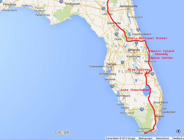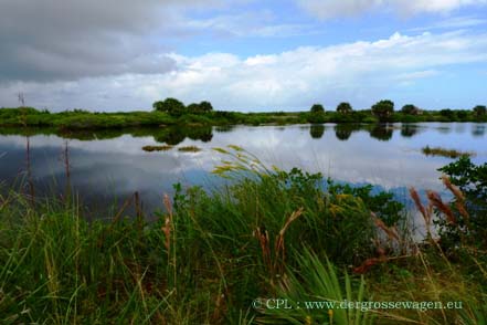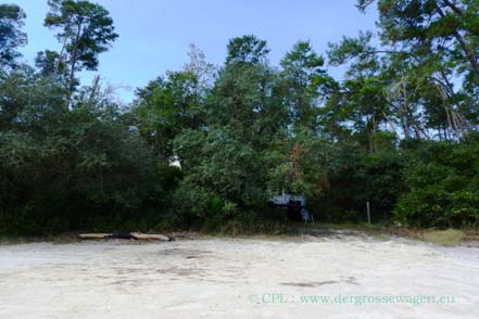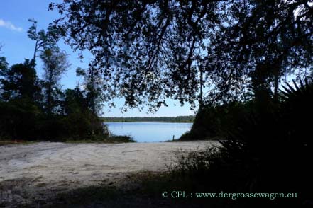 Zunächst fahren wir dann weiter auf der A1A auf den Barriere-Inseln nach Süden. Aber überall das gleiche Bild - alles ist zugebabelt, es herrscht viel Verkehr. So verlassen wir die Inseln und fahren weiter im Landesinneren Richtung Süden. Da gerade Jagdsaison ist, dürfen wir am schönen kleinen See leider nicht bleiben.