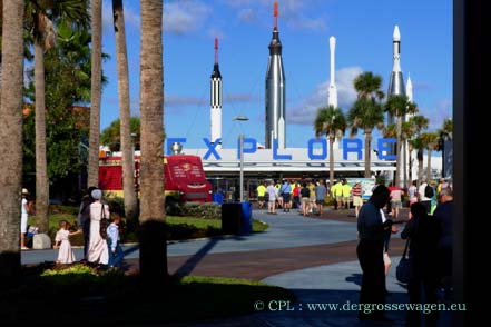 Dann heißt es aber "Auf ins Gewühl". Wir mieten uns für drei Tage auf dem ruhigen Jetty Park Campground ein, der relativ günstig für unser nächstes Vorhaben gelegen ist. Das Kennedy Space Center auf Merritt Island steht auf dem Programm. Morgens früh kurz vor der Öffnungszeit sind wir am Eingang; es gibt noch keine Schlange für den Ticketkauf, lediglich vor der Sicherheitskontrolle staut es sich für wenige Minuten. Aber insgesamt ist Gottseidank viel weniger los als befürchtet.