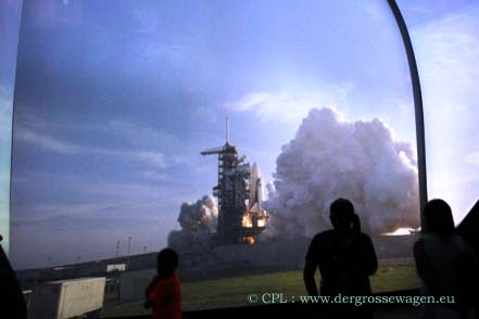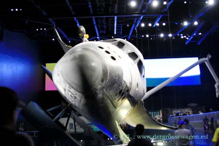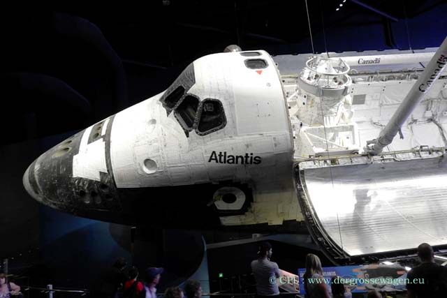 Zurück am Visitor Center Komplex dann gleich ein weiteres Highlight - das Space Shuttle Atlantis. Auch hier zunächst eine gewaltige Multimedia-Show, bevor man dann staunend vor dem Shuttle stehen kann. Ein Riesenteil - so groß haben wir uns das Shuttle nicht vorgestellt.