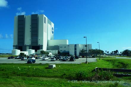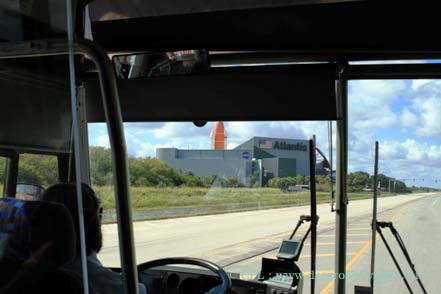 Danach nehmen wir die erste Bustour des Morgens. Die Tour führt über das NASA-Gelände, vorbei an der Montagehalle und Abschussrampen.