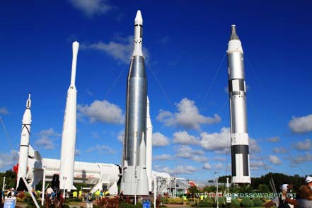 Wir starten im Rocket Garden direkt hinter dem Eingang. Hier kann man die unterschiedlichsten Raketen bestaunen.