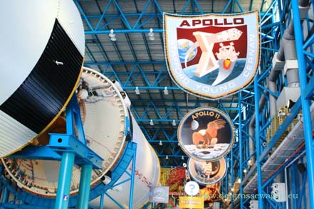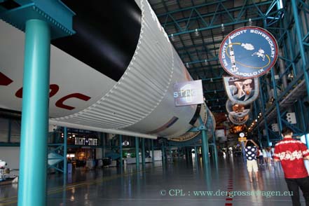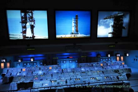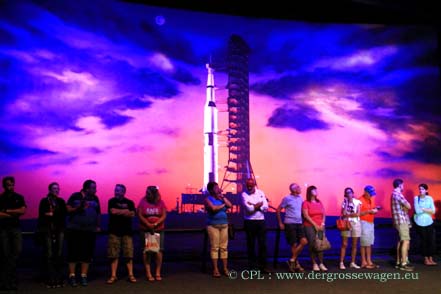 Am Apollo/Saturn V Center kann man die Fahrt unterbrechen. In einer eindrucksvollen Multimedia-Show wird man über die Apollo-Missionen informiert, dabei durch verschiedene Räume, u.a. einem Launch Control Center geschleust, bevor sich dann das Tor zur Halle mit der riesigen Saturn V öffnet.