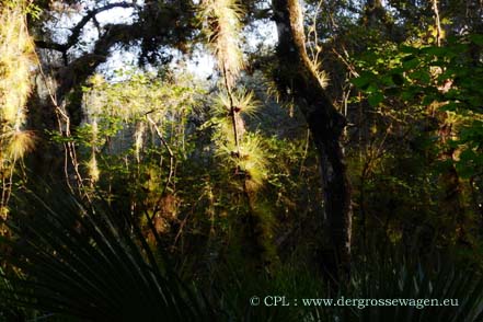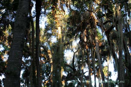 Das Wochenende ist vorüber, wir fahren zum Myakka River State Park. Entgegen unserer Erwartung sind die Campgrounds im Park trotzdem sehr gut belegt, aber wir kriegen noch einen recht brauchbaren Platz. Mittlerweile ist es nicht mehr ganz so heiß - Gottseidank! Die Landschaft in diesem State Park gefällt uns ausgesprochen gut. Die Bäume sind über und über mit Spanish Moss behangen und haben dadurch ein fast unwirkliches Aussehen.