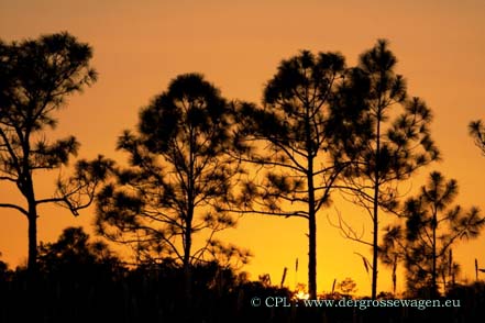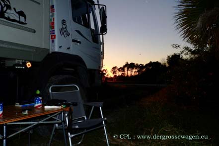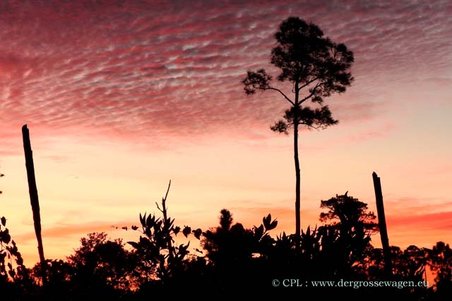 Wir finden einen freien Stellplatz an einer weiteren gravel road im Gebiet. Die Landschaft gefällt uns ganz gut, direkt am Platz können wir zahlreiche Tierbeobachtungen machen. Abends erleben wir einen schönen Sonnenuntergang. Wäre es doch nur überall in Florida so!
