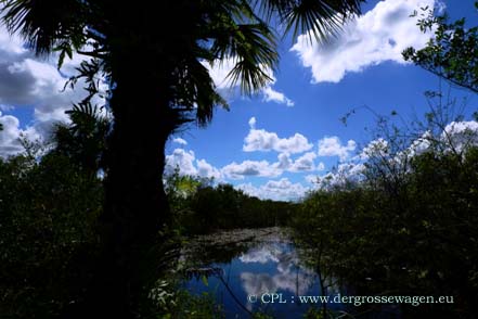 Nach unserer "Flucht" aus dem südlichen Teil des Everglades Nationalparks halten wir uns noch einige Tage im Big Cypress National Preserve auf. Wir finden einen versteckt liegenden kleinen Campground, der (noch) kostenlos ist. Alle anderen hier im Gebiet, die früher kostenlos waren oder nur eine geringe Gebühr nahmen, kosten mittlerweile richtig viel Dollar, für das, was sie bieten, eigentlich zu viel. Aber wir verbringen auf unserem schönen Platz ruhige, ungestörte Tage und Nächte. Unsere Feuerstelle ist beliebter Aufenthaltsort für zahlreiche Eidechsen, so verzichten wir auf ein Lagerfeuer. Für ein Feuer ist es außerdem sowieso immer noch viel zu heiß und schwül.