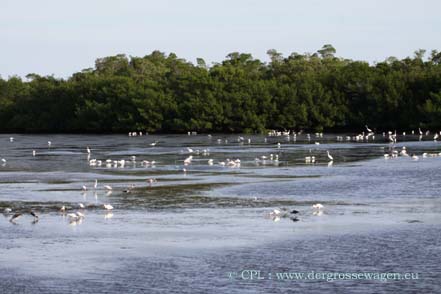 Außerdem fahren wir ins Ding Darling National Wildlife Refuge. Auch hier viel Betrieb, Auto um Auto bewegt sich auf der Einbahnstraße durch das Schutzgebiet. So viel zu sehen wie in den anderen Refuges, die wir hier in Florida besucht haben, ist nicht. Aber zumindest gelingt es uns, einige fotogene Alligatoren abzulichten. Ach übrigens, am Freitag ist das Gebiet geschlossen, um den Tieren einen Ruhetag zu gönnen! Das sagt doch eigentlich alles über den Betrieb hier aus.