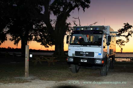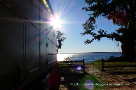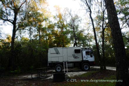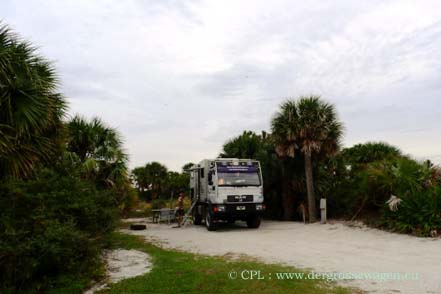 Am späten Nachmittag trifft dann leider eine Horde ein, die sich an keinerlei Regeln hält, den Platz mit deutlich mehr Personen belegt als erlaubt und Party feiert. Laute Musik, Lichtorgeln, Gekreische. Super! Der Campground Host ist direkt neben uns - er unternimmt nichts. Niemand unternimmt etwas. Wir sitzen draußen, trinken dagegen an, da an Schlaf nicht zu denken ist. Irgendwann ist dann Ruhe. Am nächsten Tag wechseln mehrere Parteien den Platz, aber keiner nennt den wahren Grund. Wir sind anscheinend die einzigen, die sich beim State Park Personal über den Krach beschweren. Und dann sagt man uns, warum wir denn nicht angerufen hätten, wenn die um 23 Uhr nicht Ruhe gegeben haben. Hä??? Also bis 23 Uhr ist so etwas erlaubt, das kann doch wohl nicht wahr sein! Auf jeden Fall erhalten wir einen anderen Platz weit entfernt - hier herrscht Ruhe. Florida und Wochenende - das passt gar nicht zusammen!!!
