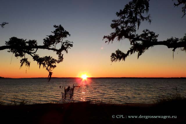 Letzte Station in Florida ist der Big Lagoon State Park - hier ist mal richtig wenig los. Dann geht es entlang der völlig zugebabelten Küste mit zunehmender Weihnachtsdekoration Richtung Mississippi. Wir tanken zu einem recht günstigen Preis - später in Mississippi hätten wir allerdings noch deutlich preiswerter tanken können!