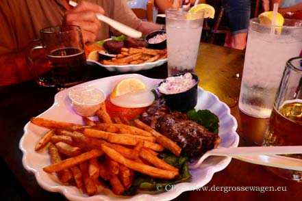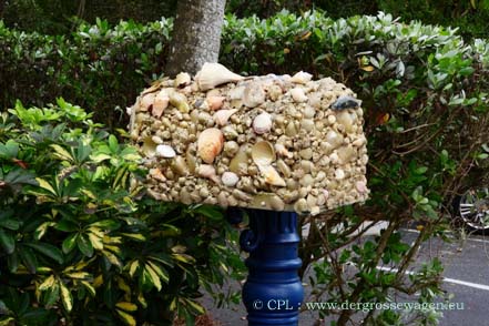 Allerdings gefallen uns die Briefkästen hier an den Villen teilweise ausgesprochen gut. Der Shop "She sells sea shells" verkauft allen Kitsch, den man mit und aus Muscheln herstellen kann. Der Weihnachtsschmuck aus Muscheln ist eigentlich fast schon wieder schön. Wir nutzen die Gelegenheit, abends in einem Restaurant gegenüber vom Campground Seafood zu essen.