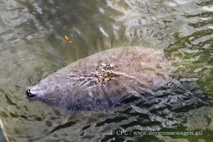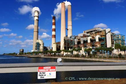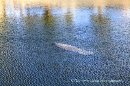 Weiter geht es in nördliche Richtung. Die Fahrt über die Interstate ist echt nervig, besonders die Trucker brettern wie die Verrückten, nehmen auch in den zahlreichen Baustellen den Fuß nicht vom Gaspedal, selbst dann nicht, wenn die Fahrspuren verengt sind. Ein kurzer Abstecher führt uns zur Tampa Electric Company. Hier soll es eine der besten Manatee Beobachtungsmöglichkeiten geben. Und tatsächlich kriegen wir die großen Seekühe zu sehen, wenn auch etwas undeutlich, denn leider ist es windig und das Wasser deshalb unruhig.
