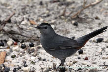 Direkt am Stellplatz viele Schmetterlinge, Squirrel und Vögel. Einen davon, den Catbird, haben wir bisher noch nie so richtig gesehen. Die Vögel sind sehr scheu, gehört haben wir sie schon oft. Der Name kommt wohl zustande aufgrund des Rufs, anfangs haben wir immer gedacht, das Maunzen einer Katze zu hören.