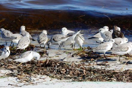 Trotz Wochenende erhalten wir erstaunlicherweise noch einen Platz im St. Joseph State Park an der Küste. Dieser Park gefällt uns wirklich gut, er liegt direkt hinter den Dünen und dem schneeweißen Sandstrand. Das Wetter ist gut, die Temperaturen erträglich warm. Bei unseren Spaziergängen sehen wir mehrmals Weißkopfseeadler (leider keine Fotos), aber die Watvögel lassen sich gut ablichten. Außerdem unzählige Pelikane und Kormorane.