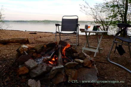 Abends sitzen wir am Lagerfeuer direkt am Seeufer; feiern unseren Hochzeitstag, bevor wir uns weiter Richtung Osten begeben.