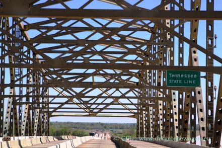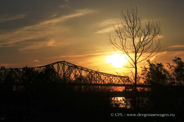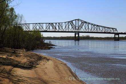 Unsere weitere Fahrt führt uns durch alle möglichen Ecken Europas: Wir passieren u.a. Paris, Dresden, Cadiz, Glasgow, Nancy, London, Manchester. Schilder weisen darauf hin, sich noch einmal mit allem Nötigen einzudecken - in der Tat gibt es unterwegs immer wieder Counties, in denen absolut nichts Alkoholisches zu kriegen ist. Wir überqueren den Mississippi und sind in Tennessee. Direkt am Fluss finden wir einen Platz für die Nacht.