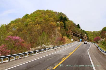 Wir wählen Nebenstrecken, die oft auch sehr gut ausgebaut sind, für unsere weitere Fahrt, wie beispielsweise den Cumberland und den Rogers Parkway. Einerseits ist das Fahren hier deutlich entspannter als auf den Interstates, andererseits lässt sich so die Landschaft besser genießen und als Nebeneffekt finden wir auch ganz gute Übernachtungsmöglichkeiten, wie z.B. im Daniel Boone National Forest.