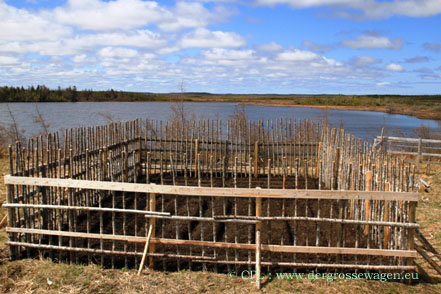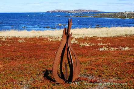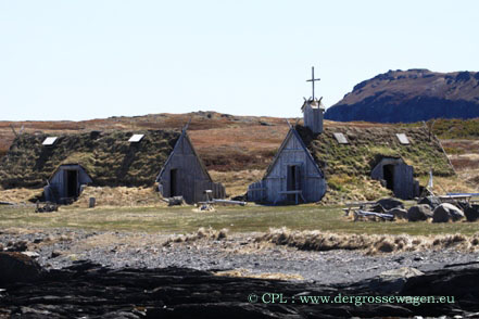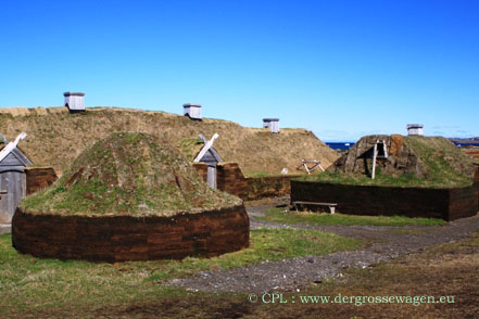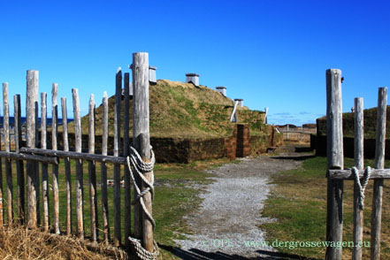 Am nächsten Morgen besuchen wir die L'Anse aux Meadows National Historic Site, ein UNESCO Weltkulturerbe. Die ersten Europäer, die schon um das Jahr 1000 in Nordamerika landeten, waren die Wikinger - dies nicht nur den isländischen Sagas nach, sondern inzwischen auch archäologisch belegt. Leif Eiriksson, dessen Denkmal an der Küste steht, leitete diese erste Expedition. Von den alten Bauten ist nichts mehr erhalten; im Gelände sind aber die Strukturen der ehemaligen Siedlung noch zu erkennen. In unmittelbarer Nachbarschaft hat man eine solche Siedlung nachgebaut. Im Inneren der Gebäude erhält man eine Vorstellung davon, wie die Menschen damals gelebt haben.