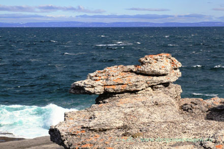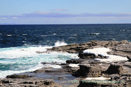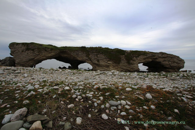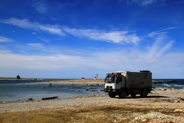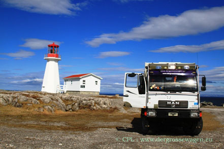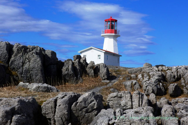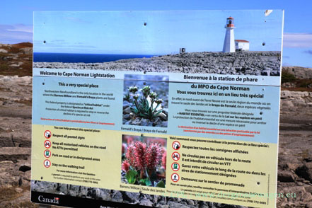 Cape Norman ist der nördlichste Punkt Neufundlands, der mit dem Fahrzeug erreichbar ist (noch etwas weiter nördlich liegt Cape Bauld an der östlichen Spitze). In eindrucksvoller Kalkstein-Landschaft steht hier ein Leuchtturm. Die raue, zerklüftete Küste, die teilweise noch von Schnee bedeckt ist, gefällt uns ausgesprochen gut. In der Ferne sehen wir die Küste Labradors, außerdem treiben Eisberge vorbei.
