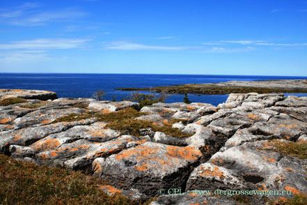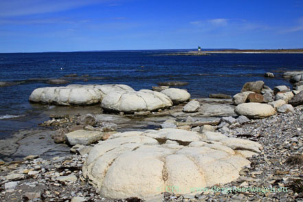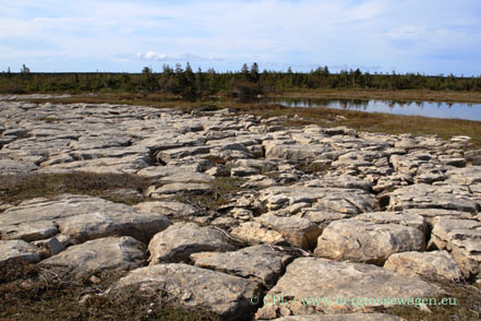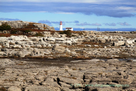 Nach mehreren Tagen in der großartigen Landschaft machen wir uns auf den langen Rückweg entlang des Viking Trails. Immerhin sind bis zum Gros Morne Nationalpark etwa 400 km zurückzulegen. Immer wieder sehen wir Elche. Da wir nun bei deutlich besserem Wetter als auf dem Hinweg unterwegs sind, schauen wir uns Flower's Cove ausführlicher an. Der fotogene Leuchtturm war auf der Hinfahrt im Nebel gar nicht zu entdecken. Wir wandern zu den sogenannten "White Rocks", wieder eine Kalkstein-Landschaft. Hier ist es wärmer als an der Nordspitze, und so finden sich zahlreiche blühende Blumen. Natürlich schauen wir uns auch die Thromboliten an. Was wie Fels aussieht und sich auch so anfühlt sind tatsächlich Lebewesen - eine sehr primitive Lebensform. Etwas Ähnliches findet man auf der Welt ansonsten nur noch in Australien im Hamelin Pool in der Shark Bay.