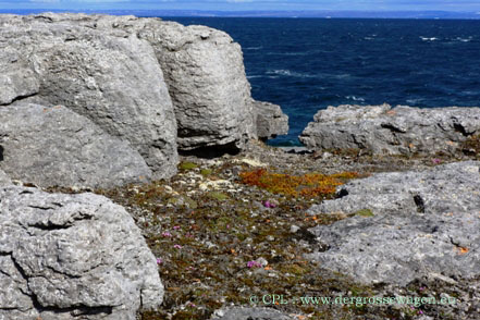 Es blüht einiges. Auch Kalkstein kommt hier im Ort wieder vor, teilweise bewachsen mit schönen Flechten. Auf dem anscheinenden Ödland in der Umgebung des Leuchtturms wachsen etliche Pflanzen, darunter auch bedrohte Arten.