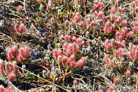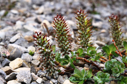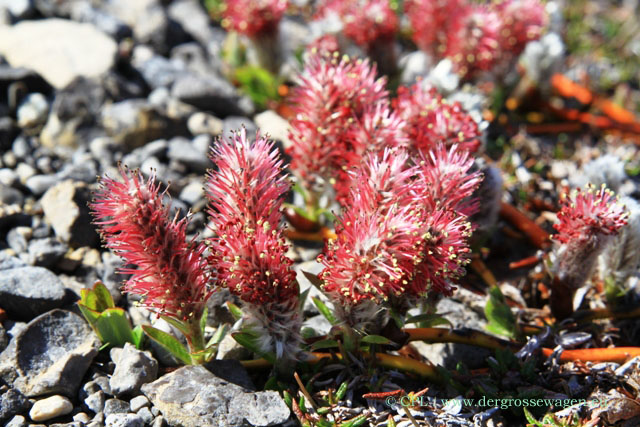 Erstaunlicherweise wachsen hier Pflanzen, u.a. auch bedrohte Arten. Eine davon, eine Weidenart, blüht gerade.