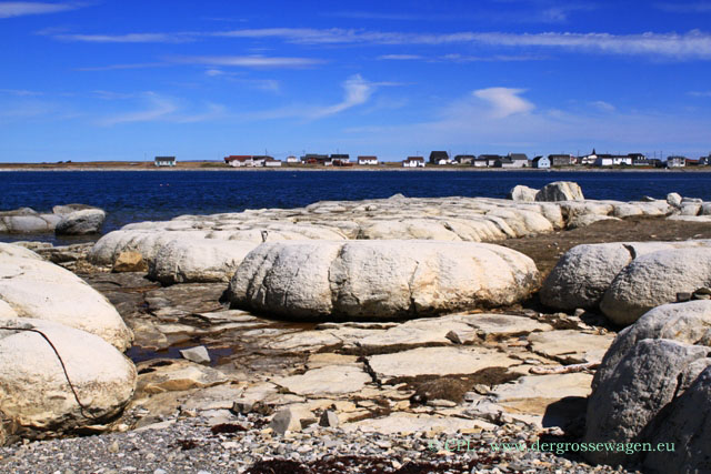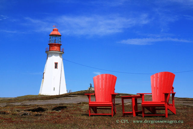 Port au Choix ist einerseits ein netter Fischerort, andererseits eine National Historic Site. Da das Visitor Center "closed for the season" ist, erschließt sich uns die Bedeutung nicht so ganz, aber der Leuchtturm mit den roten Stühlen ist durchaus fotogen. Und von den Stühlen aus entdecken wir sogar die ersten Wale weit draußen in der Bucht.