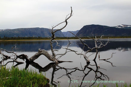 So schauen wir uns noch das Lobster Cove Lighthouse an; die ehemaligen Wohnräume können besichtigt werden. Dann fahren wir für die Nacht an einen See, wo wir einen weitgereisten Australier treffen. Am Abend bessert das Wetter sich weiter, so dass wir am Lagerfeuer sitzen können und die letzten Tage Revue passieren lassen. Insgesamt hat uns dieser nordwestliche Teil Neufundlands ausgesprochen gut gefallen. Den Gros Morne Nationalpark, der häufig als das absolute Highlight Neufundlands bezeichnet wird, finden wir allerdings etwas überbewertet. Höhepunkt der Nordwest-Halbinsel ist für uns eindeutig der nördliche Bereich mit Cape Norman und L'Anse aux Meadows.