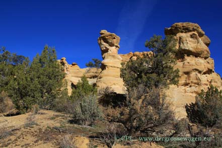 Wir erreichen New Mexico in der Nähe von Aztec - Gelegenheit, noch einmal bei den schönen Felsen und Felsbögen vorbeizuschauen. (siehe auch New Mexico). Hier ist derzeit absolut nichts los, kein Wunder, es ist ein wenig kühl. So können wir hier im Gebiet dem Osterbetrieb entgehen.