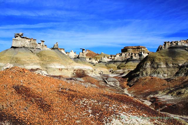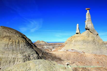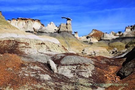 Auch die Bisti Wilderness liegt direkt an unserem Weg. An schönem Stellplatz verbringen wir zwei Tage, diesmal nehmen wir uns bei unserer Wanderung mehr den bisher noch nicht so intensiv erforschten nördlichen Teil vor. Unsere älteren Berichte hierzu findet Ihr unter den Links hier auf der Seite.