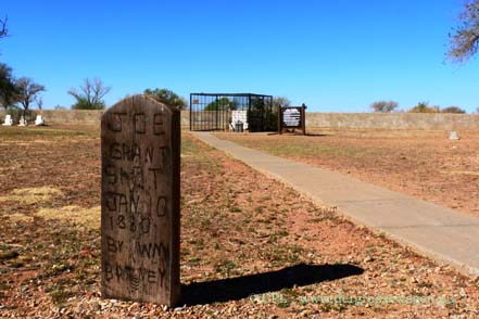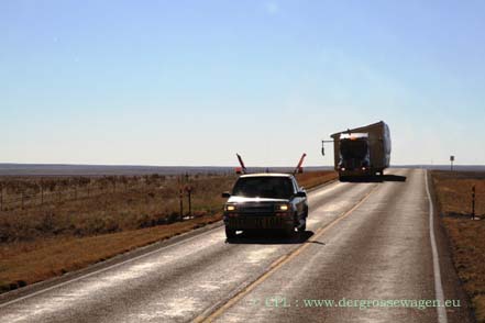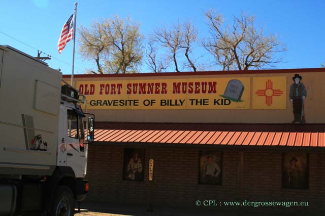 Die Nacht verbringen wir in einem National Forest, bevor es am nächsten Tag durch öde Landschaft Richtung Texas geht. Wenn Ihr Euch jetzt wundert, dass wir so viele Ziele in New Mexico "auslassen" - schaut einfach hier nach: New Mexico 1 und New Mexico 2. Viel Verkehr ist nicht, ab und an ein "oversized load". Eigentlich wollen wir uns Fort Sumner anschauen, aber dieses ist montags und dienstags geschlossen. Aber zumindest können wir noch einen Blick auf das Grab von Billy the Kid (eine Westernlegende, obwohl eigentlich ein Bankräuber und Verbrecher) werfen, bevor wir den Wilden Westen verlassen.