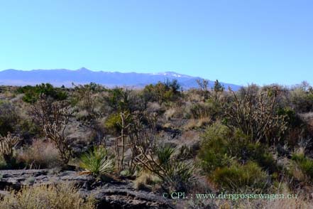 Bei einer Wanderung auf einen Berg hinauf können wir dann aus der Ferne einen Blick auf die Trinity Site (und weit entfernt auf unseren MAN) werfen. Die Sicherheitskontrollen zum Befahren des Geländes und das Gewusel ersparen wir uns und verbringen die Zeit lieber auf unserer Wanderung.