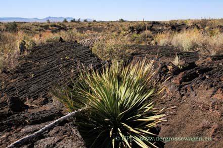 Nicht weit entfernt liegt das Valley of Fires - nicht zu verwechseln mit dem Valley of Fire in Nevada. Hier handelt es sich um ein vulkanisches Gebiet mit interessanten Lavaformationen. In der Lava entdecken wir sogar schon blühende Kakteen.