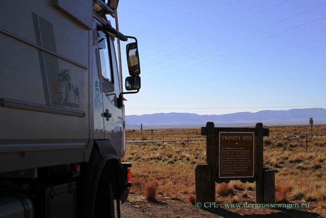 Unsere benötigten Teile sind eingetroffen. Einbauen werden wir sie hier nicht, denn ein "busy" Wochenende droht, der bisher angenehm leere Campground füllt sich zusehends. Die Trinity Site - der Ort, wo die erste Atombombe gezündet wurde - hat "Tag der offenen Tür". Das Ereignis lockt viele Besucher. Wir fahren auch in die Richtung, finden sogar einen schönen und vor allem ruhigen Stellplatz ganz in der Nähe.
