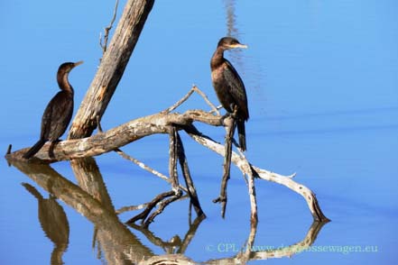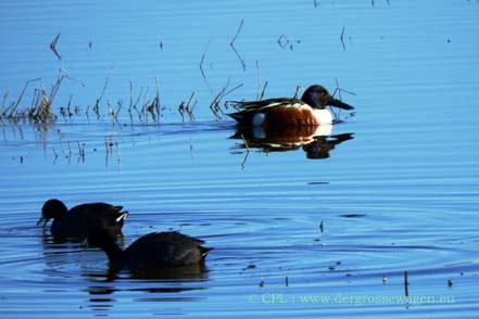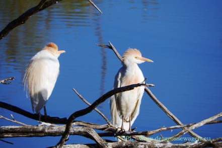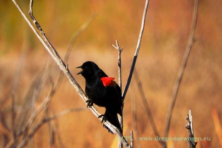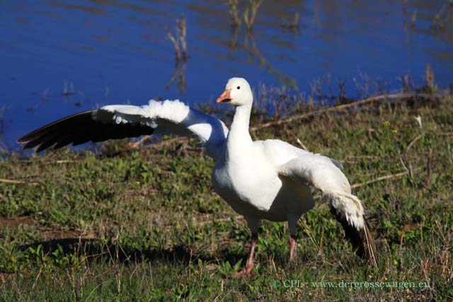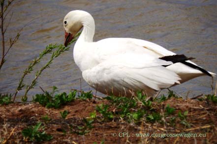 Zum Naturreservat fahren wir hauptsächlich noch einmal, weil wir unbedingt eine Adresse für die Zustellung weiterer Ersatzteile aus Deutschland brauchen. Diese können wir uns zum fast an der Parkgrenze liegenden Bosque Birdwatcher's RV-Park schicken lassen. Uns ist natürlich klar, dass die Wintergäste nicht mehr da sind (siehe hier), aber auch jetzt lassen sich bei unseren Touren einige Tiere beobachten. Selbst balzende Truthähne sichten wir, wenn auch nur weiter entfernt. Zwei Schneegänse haben anscheinend den Abflug verpasst. Ob sie wohl hier bleiben werden?