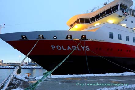 Wir haben das gleiche Schiff gebucht wie vor fünf Jahren, da uns die MS Polarlys seinerzeit sehr gut gefallen hatte. Mittlerweile ist das Schiff innen komplett renoviert, alles ist moderner geworden. Der ehemals kleine Shop wurde drastisch vergrößert. Auf dem Außendeck 6 sind nun zwei Jacuzzis untergebracht. Mit Ausnahme der Panoramalounge hat uns die alte Polarlys besser gefallen, wir denken, es ist viel Atmosphäre verloren gegangen. Besonders das auf Deck 7 befindliche Café gefällt uns absolut gar nicht. Hinzu kommt, dass deutlich mehr Passagiere an Bord sind. Überall ist viel los, in den öffentlichen Bereichen ist es teilweise gar nicht so leicht, einen Sitzplatz zu ergattern.