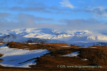 Am Nachmittag treffen wir dann in Borgarnes am Borgarfjörður ein, hoffen angesichts des kalten und klaren Wetters auf Nordlicht, aber leider zieht es sich zu, also keine Chance.