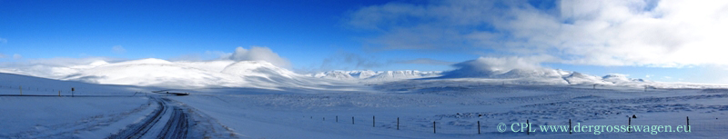Die wolkenlose Nacht führt zu einem deutlichen Temperatursturz. Auf dem Weg nach Akureyri und weiter zum Mývatn fällt das Thermometer sogar noch weiter. Im Öxnadalur haben wir minus 22 Grad!