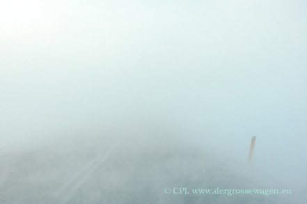 Der Wetterbericht lässt für unseren Abreisetag nichts Gutes erahnen. Morgens schnell noch einmal die Straßenzustände und Wettervorhersagen bei safetravel.is und road.is sowie vedur.is gecheckt - heute herrschen keine idealen Reisebedingungen, und zwar in beide möglichen Richtungen (also so zurück wie wir gekommen sind oder weiter auf der 1 durch den Ostteil nach Süden). Da es bei der zweiten Variante insgesamt noch ein wenig besser aussieht, folgen wir unserem ursprünglichen Plan der Umrundung der Insel. Noch ist die Straße Richtung Egilsstaðir und weiter südwärts als fahrbar eingestuft, offiziell freigegeben. Unterwegs verschlechtern sich dann die Bedingungen zusehends. Ein Blizzard peitscht den Schnee über die Straße, Schneeverwehungen entstehen. Die Sicht wird immer schlechter. Teilweise sieht man sprichwörtlich nahezu die Hand vor Augen nicht, geschweige denn die Pfosten, die den Straßenverlauf markieren. Umdrehen bringt nun auch nichts mehr, zurück sieht es noch schlechter aus. Anhalten geht nicht, wo denn auch? Mitten auf der Straße? Also im Schritttempo weiter. Als ein Van dann in einer Wehe steckenbleibt ist es erst einmal vorbei. Nichts geht mehr. Es dauert gut zwei Stunden, ihn wieder flott zu machen. Räumfahrzeuge bemühen sich, die Straße so gut es geht "befahrbar" zu machen. Letztendlich brauchen wir für die Strecke nach Egilsstaðir gut fünfeinhalb Stunden. Hier machen wir erst einmal Schluss, suchen uns ein Hotel. Für heute reicht es.