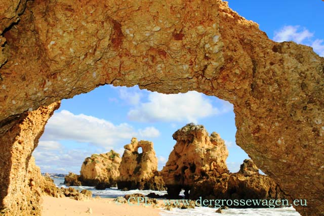 Besonders schöne Torbögen und Felsen finden sich an der Praia dos Arrifes; so sieht man die Algarve in Prospekten immer wieder abgebildet. Was diese nicht zeigen, ist die intensive Bebauung direkt im Hinterland.