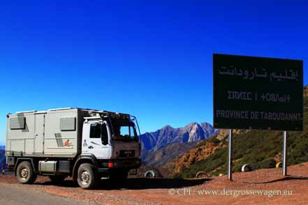 Im weiteren Verlauf der Tour wollen wir noch einmal nach Marrakech. Wir biegen von der N10 ab zum Tizi 'n Test. Zunächst handelt es sich bei der Zufahrt um eine sehr komfortable Straße. Auch im folgenden steilen Anstieg ist die Strecke noch recht gut. Aber etwa 5 km vor der Passhöhe ist die Herrlichkeit dann vorbei. Es wird schlechter, ein schmales Bergsträßchen übersät mit Schlaglöchern. Wieder sind wir froh, dass hier im Moment nicht viel Verkehr ist.