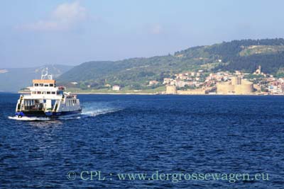 Wir verlassen Europa. In Eceabat nehmen wir die Fähre nach Canakkale. Wir haben Glück: Wir können direkt aufs Boot fahren; das Schiff legt unmittelbar danach ab.
