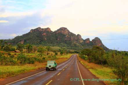 Nach etlichen Tagen gehen unsere Vorräte zu Ende. Also verlassen wir schweren Herzens die Estrada Parque und fahren in die nächste Ortschaft.