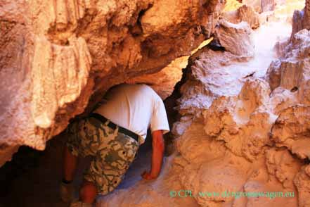Pflichtprogramm für alle Besucher ist das Valle de la Luna. Wir fahren am frühen Morgen dorthin, zu der Zeit ist noch nicht so viel los. Mit Taschenlampen bewaffnet gehen und teilweise kriechen wir durch die Caverna de Sal. Mit dem MAN fahren wir bis ans Ende zu den bekannten Felsen Tres Marias. Zwei Tage verbringen wir dann in der Nähe unter einem Schattenbaum mit großartiger Aussicht.