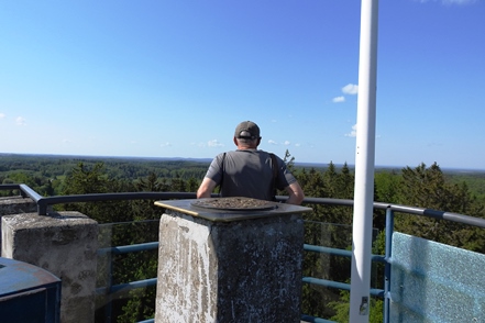 Bald danach sind wir am Großen Eierberg, dem Suur Munnumägi, stolze 312 m hoch. Die eigentliche Bergbesteigung sind dann gerade einmal etwa 40 Höhenmeter. Vom Aussichtsturm hat man einen weiten Blick über die Landschaft Estlands im Osten, die wir nun verlassen werden.